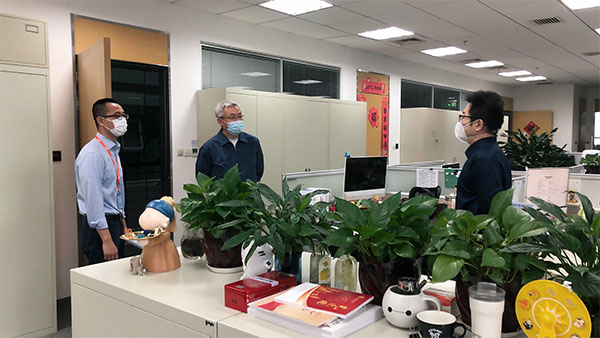 Liu first visited the executives and staff at SIG's headquarters, SIG Asset Management Co., Ltd. and Shanghai SITICO Assets Management Co., Ltd., as well as third-party service staff including property staff and canteen staff, inquiring about their work and life, expressing thanks for their diligent efforts, and asking them to stay safe, alternate work with rest, perform their duties, and work harder to consolidate the outcomes of epidemic control and promote the steady development of SIG.
