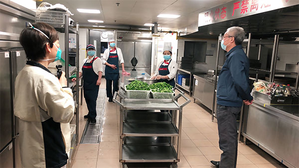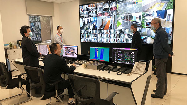 Then the team headed for the public area, the monitoring room, the fire pump room and other key areas of SIG Mansion, to inspect the epidemic control and safety of Tower A and B. After listening to an introduction by property staff, Liu inquired about the separate management of staff by area, disinfection, supplies storage and disaster control, and inspected the use of "place code" at entries & exits, the moving line design of express delivery and logistics, the standardized disinfection of express parcels, the operation and maintenance of safety facilities and equipment, as well as the safety management of water and electricity use.